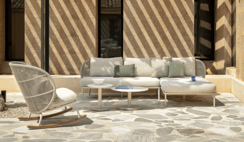 On the other hand, Skyline Design’s Krabi and Rodona products rely more on synthetic fibers, such as HDPE wicker. While these materials offer excellent weather resistance and low maintenance, they have a higher environmental footprint during production, and the synthetic look can feel less warm and inviting than that of natural rope or wood.