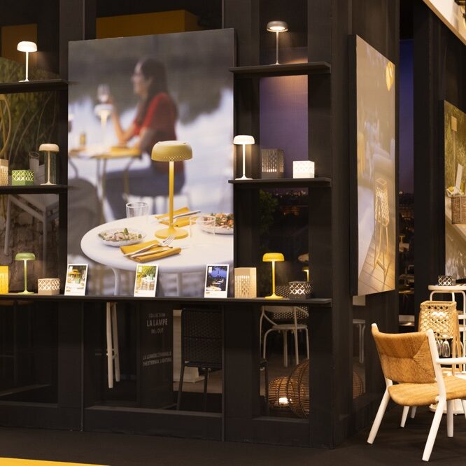The brand displayed a range of solar-powered lighting fixtures that seamlessly blend form and function, showing how eco-friendly lighting can align with luxury and modernity. The booth featured Maiori’s signature modular lamps and outdoor and indoor solutions that quickly adapt to various environments, from hotel terraces to restaurant lounges.